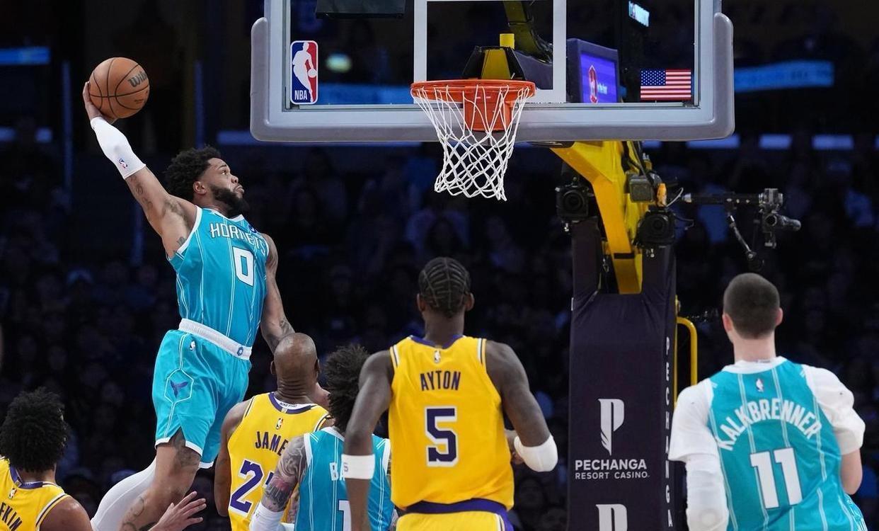NBA常规赛,湖人坐镇主场迎击黄蜂。本场比赛之前,湖人24胜14负排名西部第5,近段时间他们状态起伏不定,里夫斯受伤对球队打击还是比较大的,湖人缺乏稳定的角色得分点,进攻端太依赖詹姆斯东契奇双核心了,与此同时,他们的防守也不太行,进攻效率联盟第7,防守效率却只有联盟第23,场均盖帽联盟倒数第3。东契奇防守习惯不好总爱抱怨,老詹老了,里夫斯天赋有限,防守可能会成为湖人季后赛取得突破的阻碍。另一边的黄蜂队,本场比赛之前,14胜26负排名东部第12,作为鱼腩队之一,黄蜂实力有限,阵容也都是年轻球员。